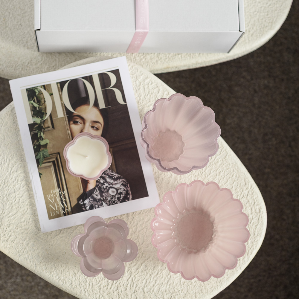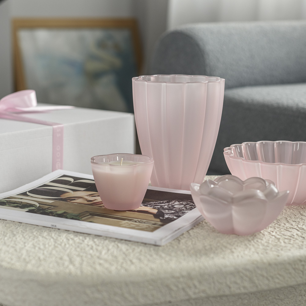 Dekoracyjny zestaw prezentowy różowy-wazon misa świecznik świeca