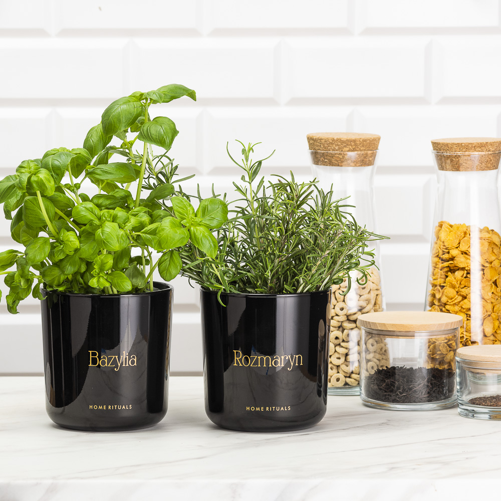Stylowy napis wykonany metodą sitodruku w kolorze złotym nie tylko dodaje wyjątkowej klasy, ale również ułatwia organizację domowego zielnika, pomagając w estetycznej segregacji ziół.