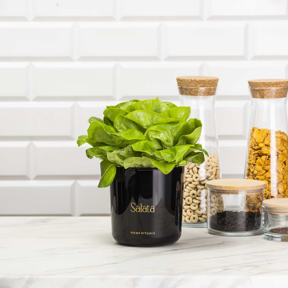 Doniczka osłonka czarna ze złotym napisem Sałata 13cm