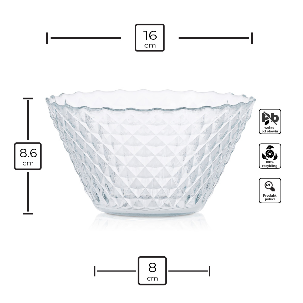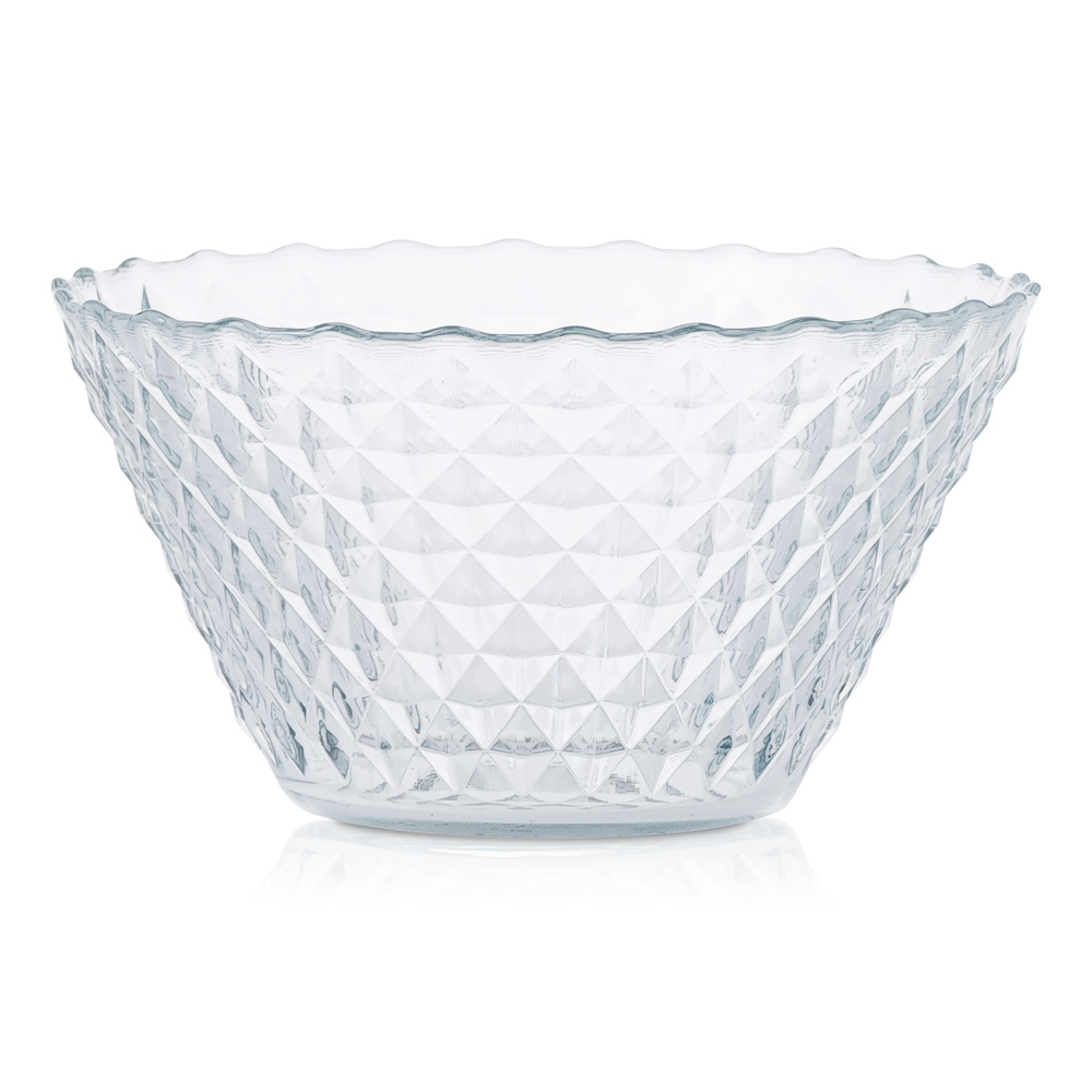 Zachwycająca szklana miska o wyjątkowym, kryształowym charakterze to idealny wybór dla miłośników eleganckich dodatków do stołu.