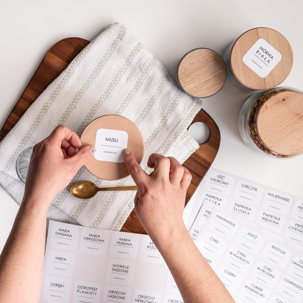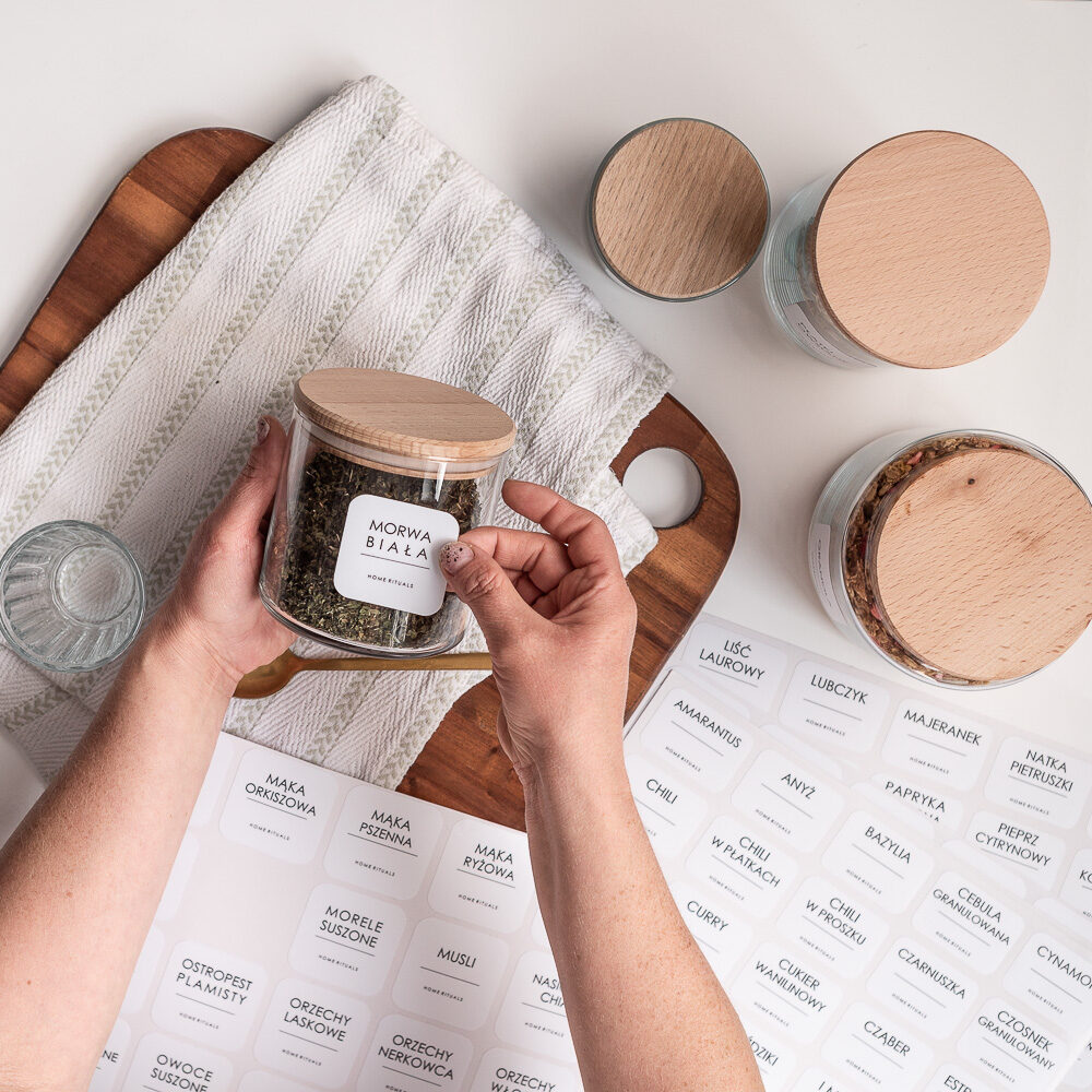 Dzięki naszym minimalistycznym naklejkom łatwo oznaczysz pojemniki z przyprawami i produktami spożywczymi, tworząc spójną, estetyczną i funkcjonalną przestrzeń.