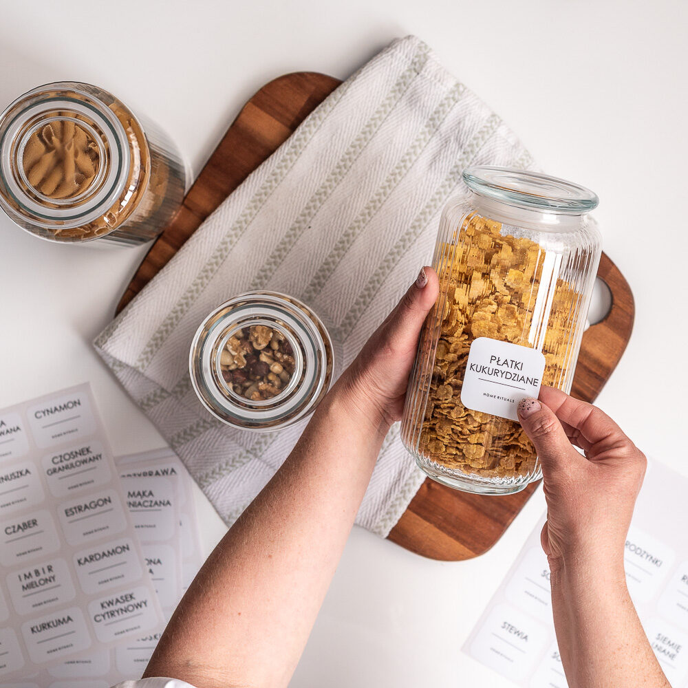 To praktyczne rozwiązanie, które pomaga szybko odnaleźć potrzebne składniki i zachować porządek w szafkach, szufladach oraz spiżarni.