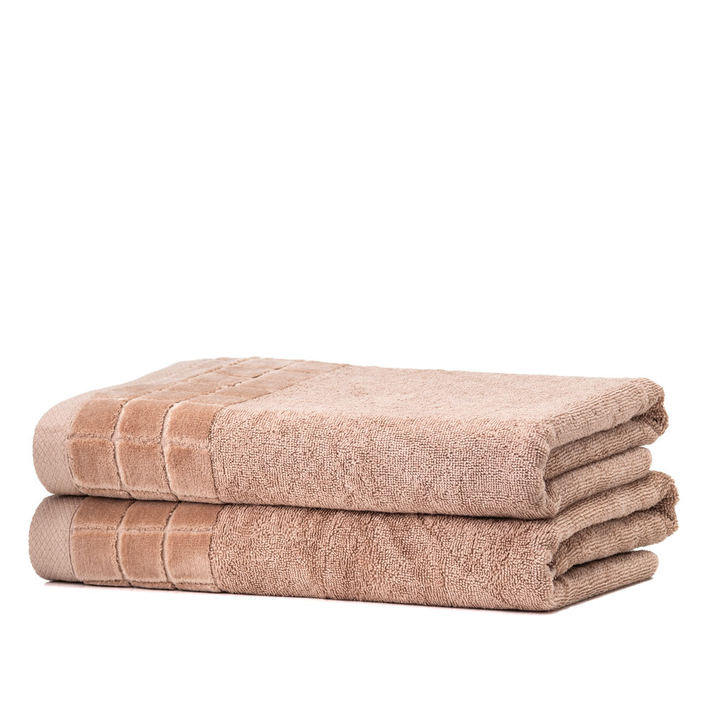 Ręcznik premium PURE HOME wyróżnia się elegancką bordiurą z motywem kostek – 3 kostki welurowe na jednym brzegu i 1 kostka na drugim. To subtelny akcent, który podkreśla jego ekskluzywny charakter i nadaje mu wyrafinowanego wyglądu. Doskonale komponuje się z nowoczesnymi oraz klasycznymi aranżacjami wnętrz.