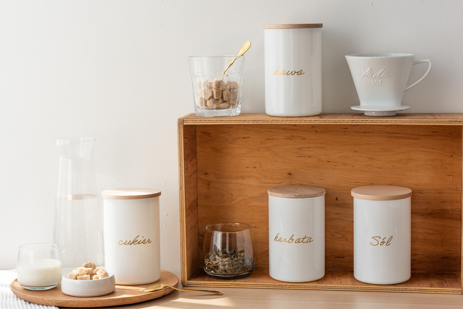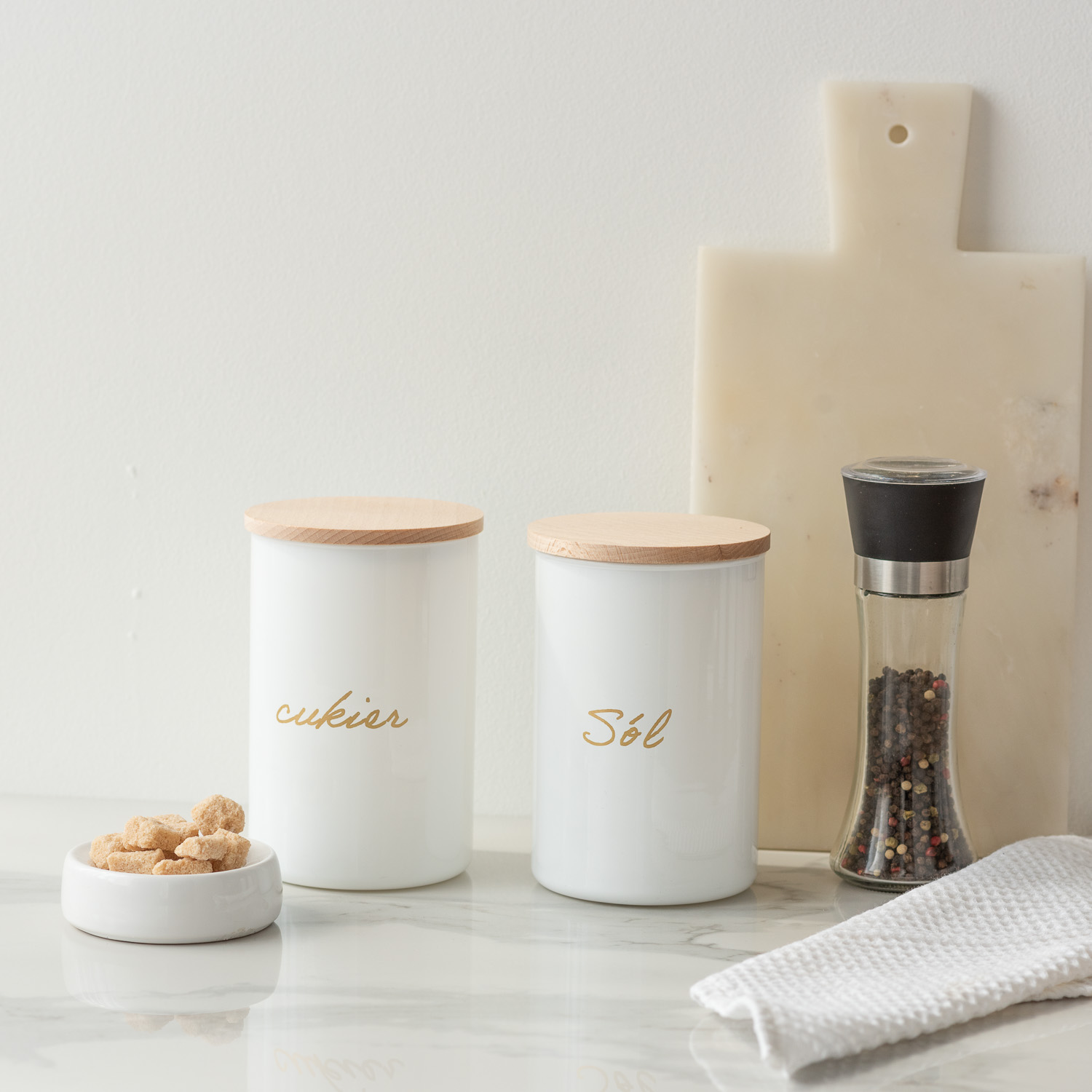 Biały pojemnik na cukier z połyskiem i złotym napisem to nie tylko praktyczny sposób na organizację najczęściej używanych produktów, ale także estetyczny detal, który wzbogaci wnętrze Twojej kuchni. W naszym sklepie znajdziesz również pojemniki na kawę, herbatę i sól, które razem tworzą spójny, elegancki zestaw.