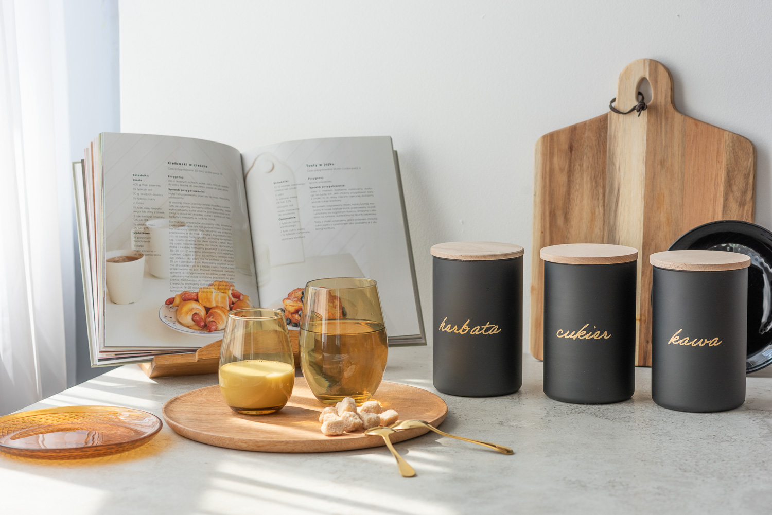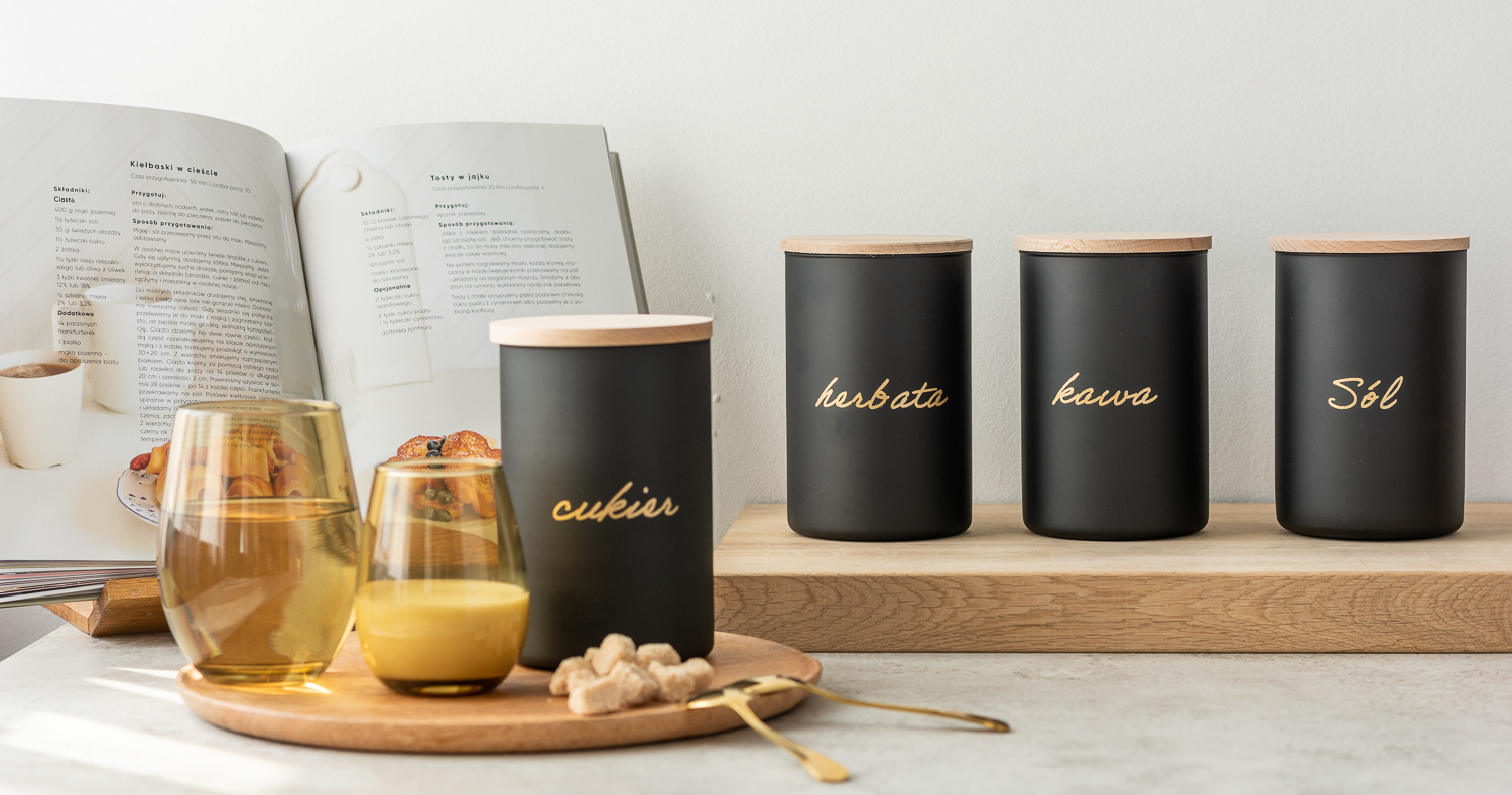 W naszym sklepie znajdziesz także pojemniki na herbatę, cukier i sól, które razem tworzą spójny, elegancki komplet. To doskonały sposób na przechowywanie najważniejszych artykułów spożywczych, który ułatwia organizację i nadaje kuchni stylowego charakteru.