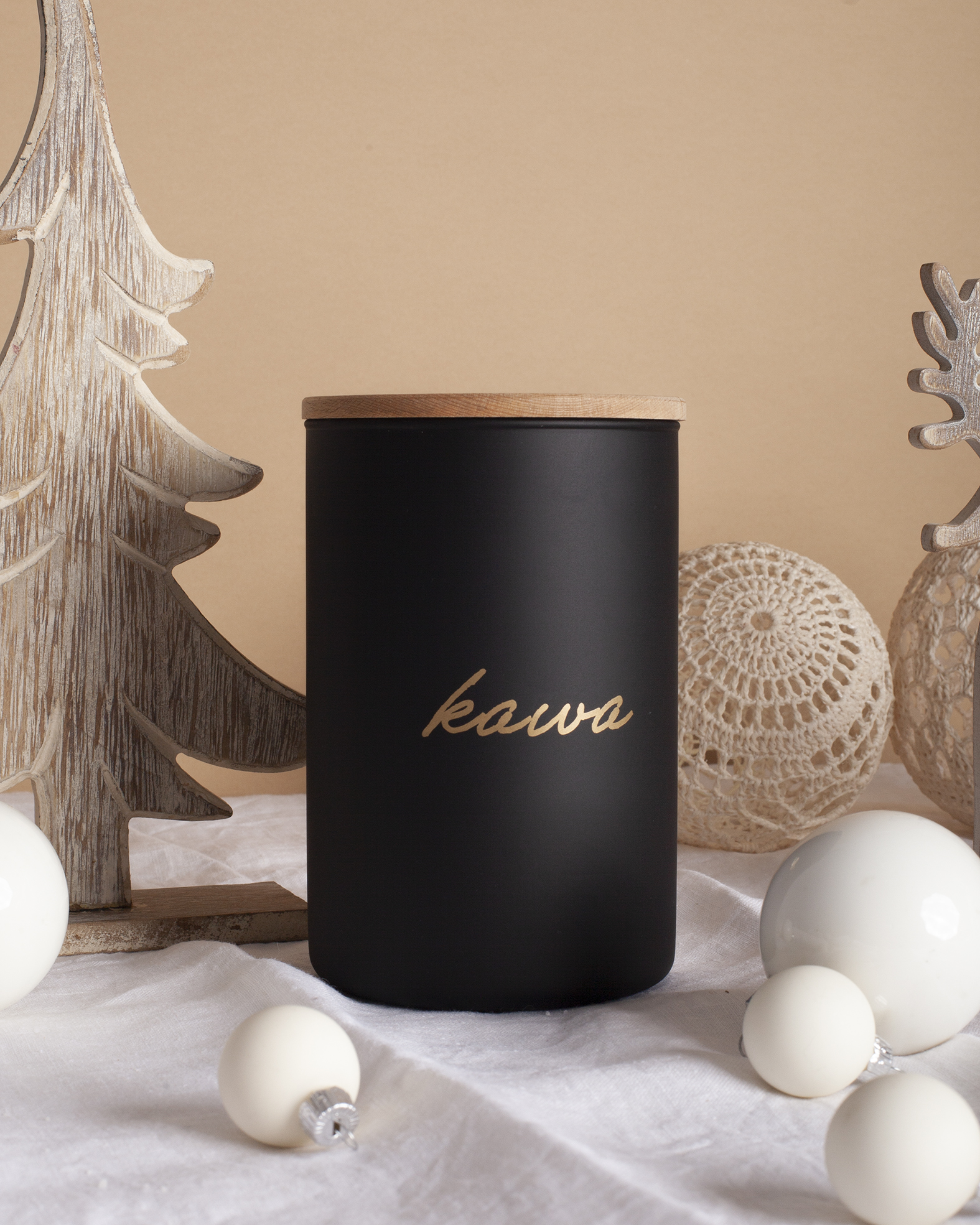 Pojemnik szklany czarny mat ze złotym napisem kawa
