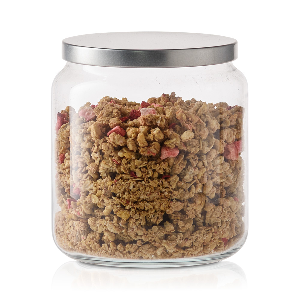 Praktyczny i elegancki szklany pojemnik do przechowywania z deklem metalowym to doskonałe rozwiązanie do przechowywania różnorodnych produktów spożywczych. Jego uniwersalna, cylindryczna forma sprawia, że pasuje do każdej kuchni, a przezroczyste szkło pozwala na szybkie sprawdzenie zawartości.