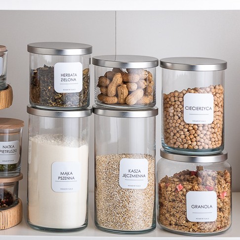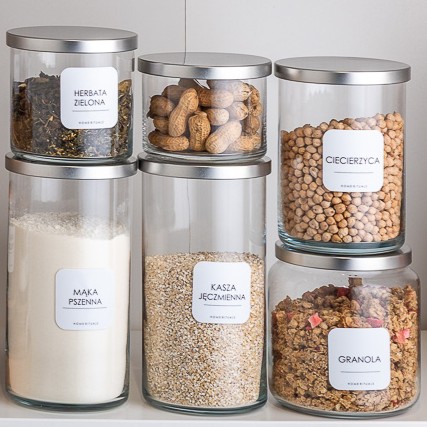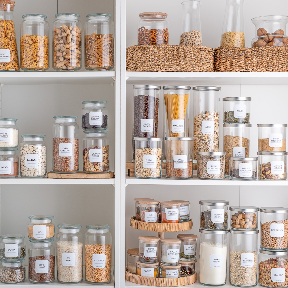 Aby ułatwić organizację, kolekcję PURE można uzupełnić o eleganckie naklejki, które pozwalają szybko odnaleźć odpowiednie składniki i i dobrze zorganizować domową spiżarnię.