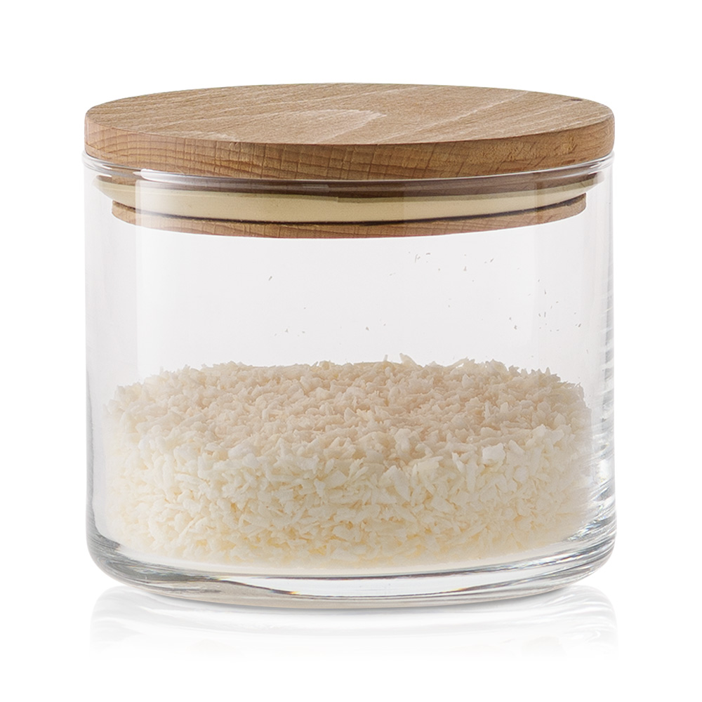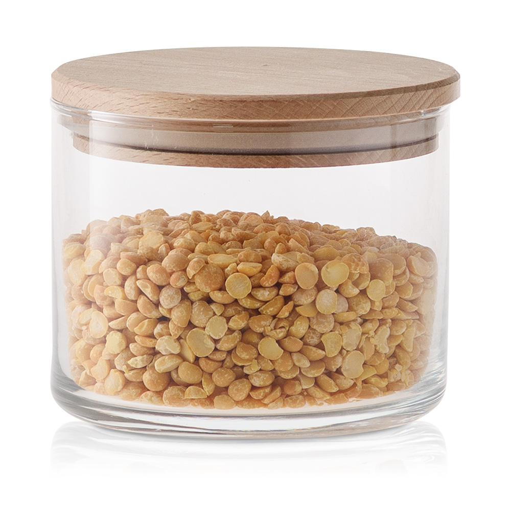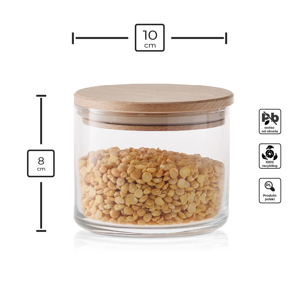 Praktyczny i elegancki szklany pojemnik do przechowywania z deklem drewnianym to doskonałe rozwiązanie do przechowywania różnorodnych produktów spożywczych. Jego uniwersalna, cylindryczna forma sprawia, że pasuje do każdej kuchni, a przezroczyste szkło pozwala na szybkie sprawdzenie zawartości.