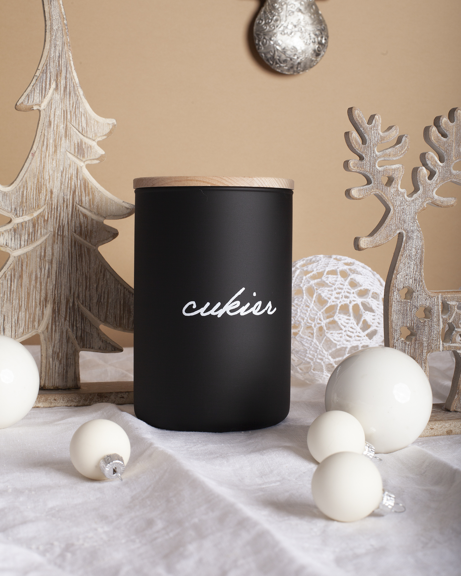 Szklany pojemnik do cukru w kolorze czarny mat idealnie sprawdzi się w każdej kuchni.