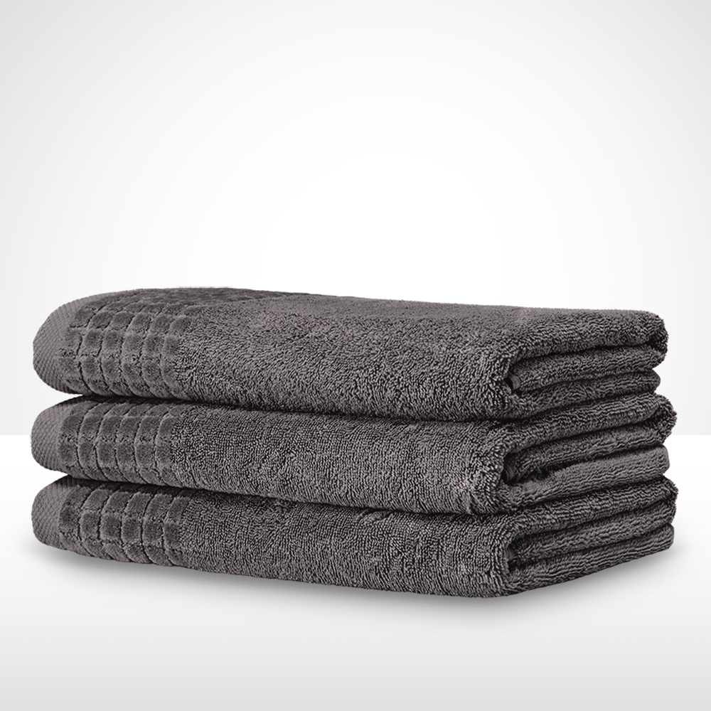 Ręcznik 50×100 bawełniany grafitowy LARISA dostępne są w trzech wariantach rozmiarowych: 70×140 cm, 50×100 cm oraz kompaktowe 30×50 cm, dedykowane jako ręczniki bawełniane do rąk.