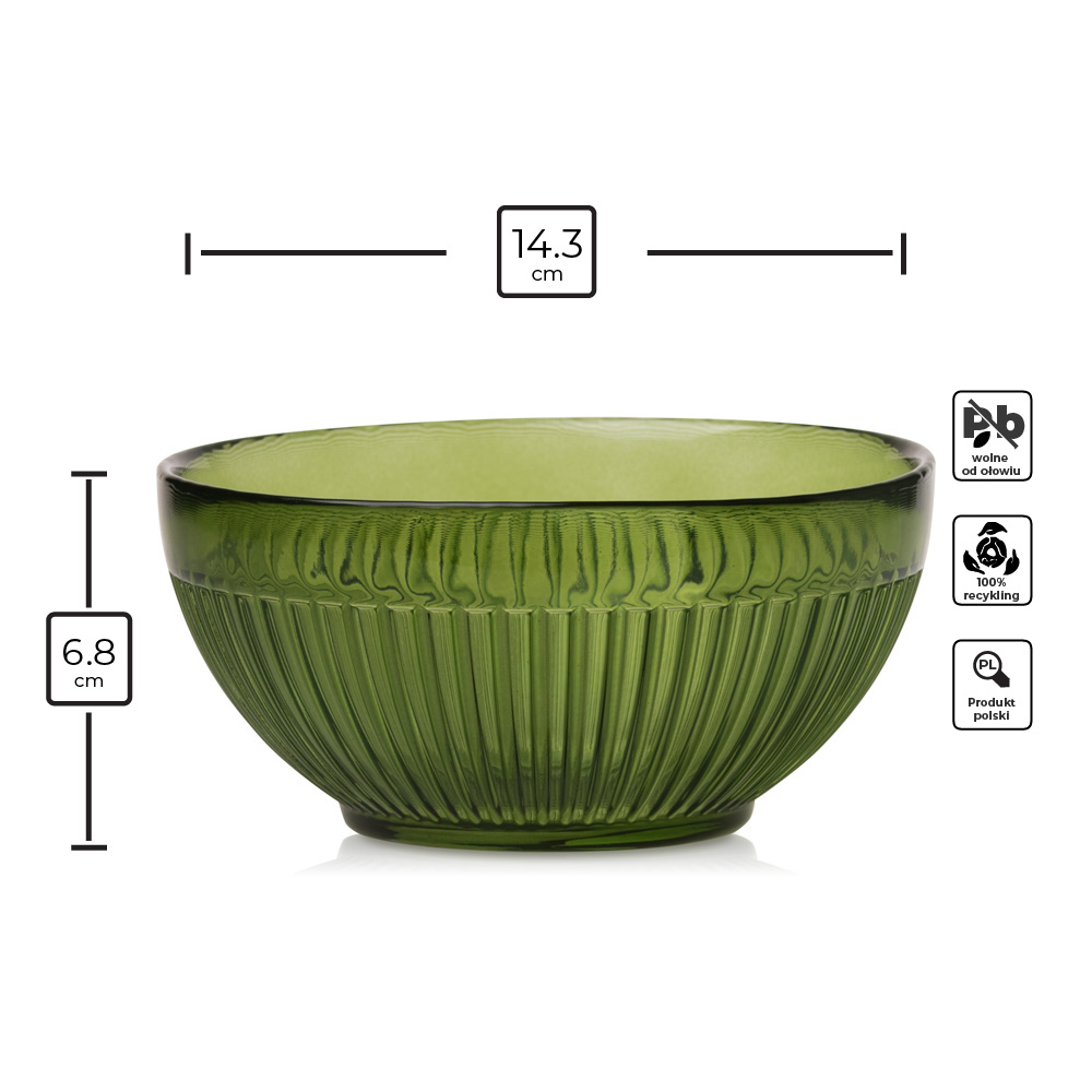 Salaterka miska szklana zielony transparent 655 ml kpl 6 szt