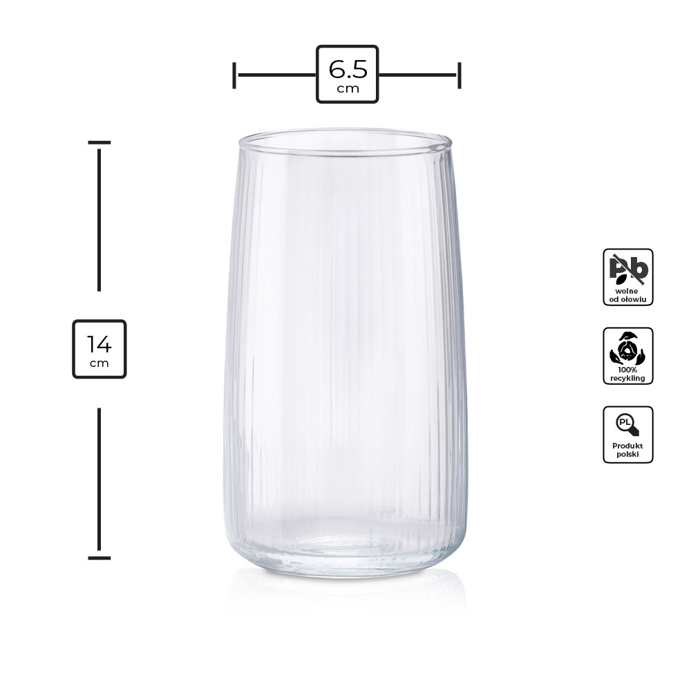 Szklanka ryflowana wysoka 500 ml kpl 6 szt.