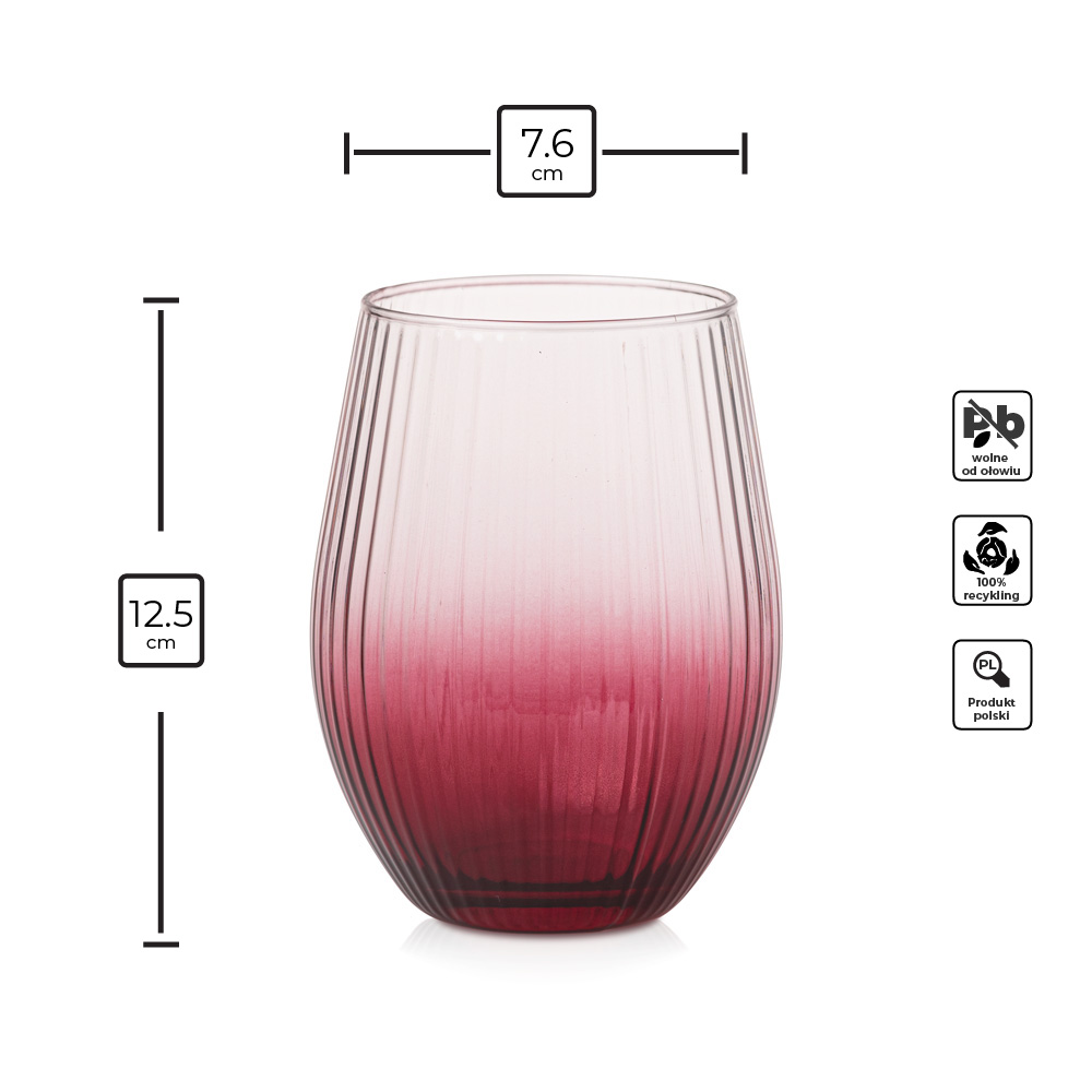 Szklanki ryflowane bordo ombre 500 ml 6 szt
