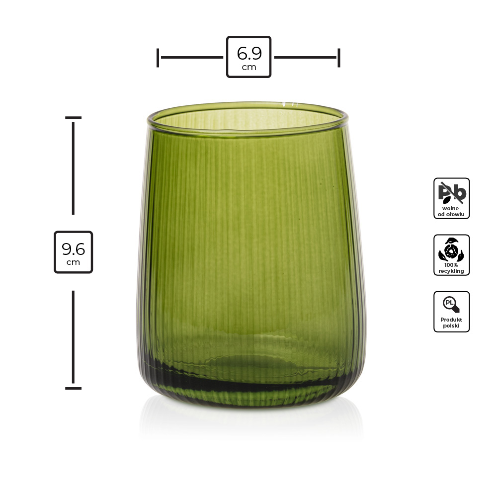 Szklanki ryflowane zielony transparent 330 ml 6 szt