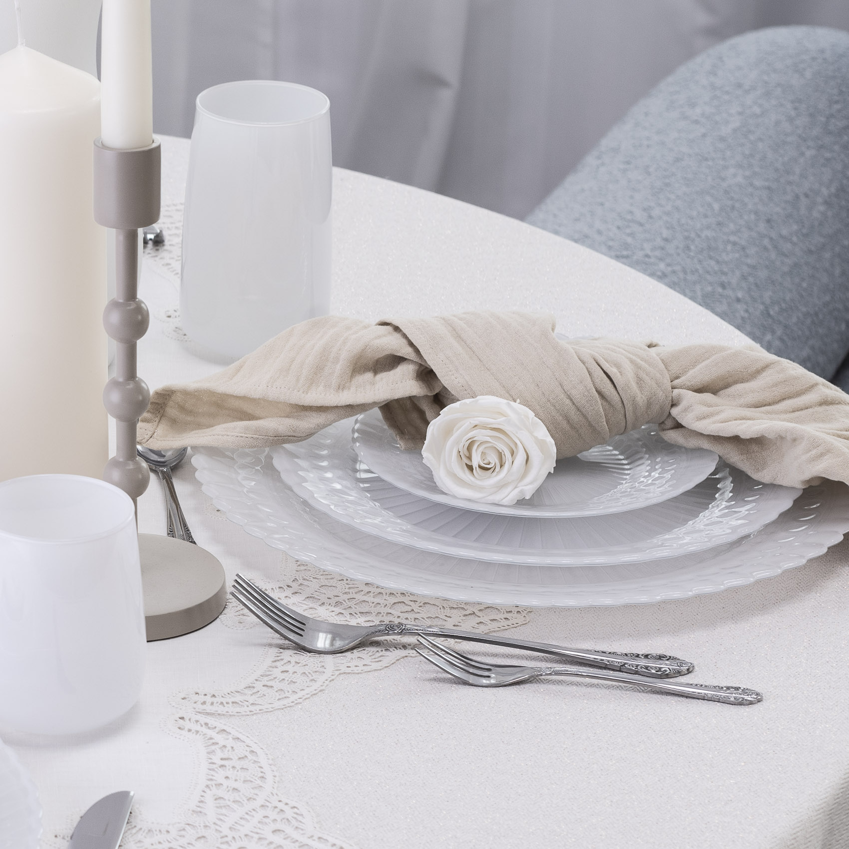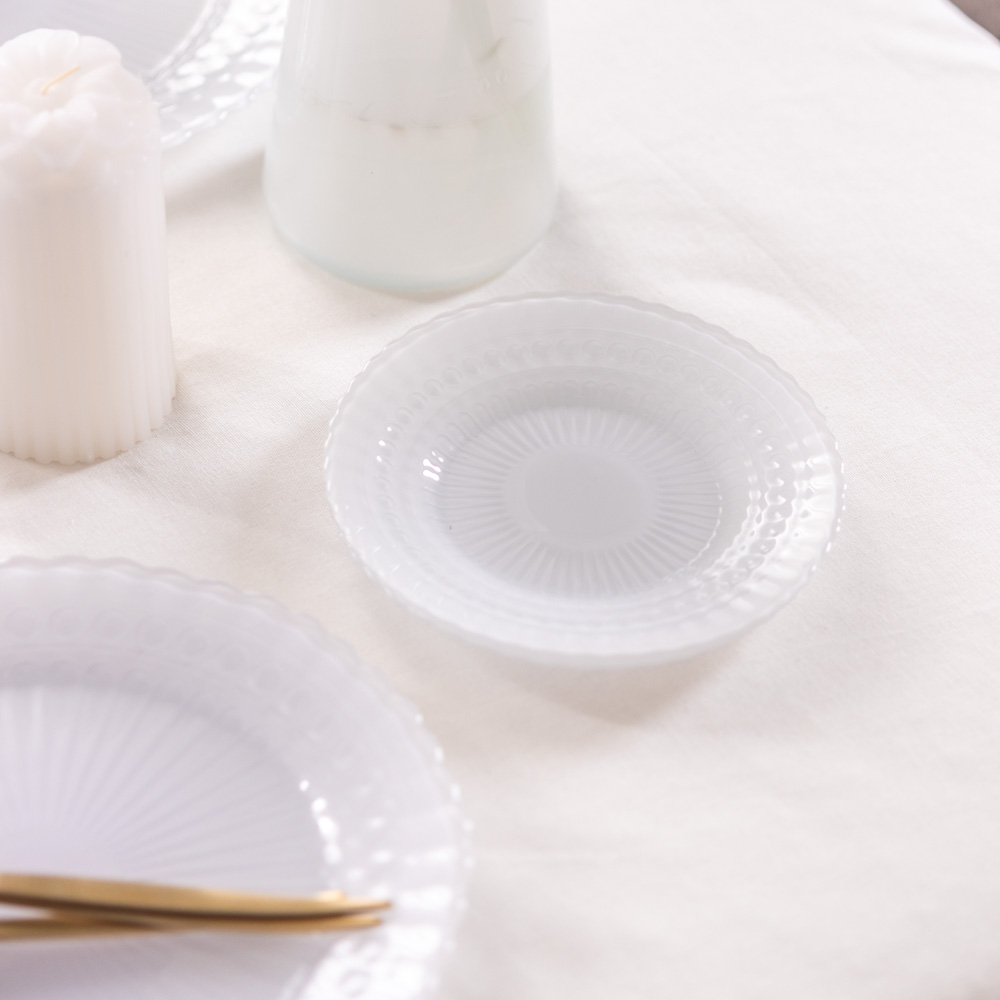 Talerz z wykończeniem w formie falbanki w kolorze białym “milky” brzmi wyjątkowo stylowo!