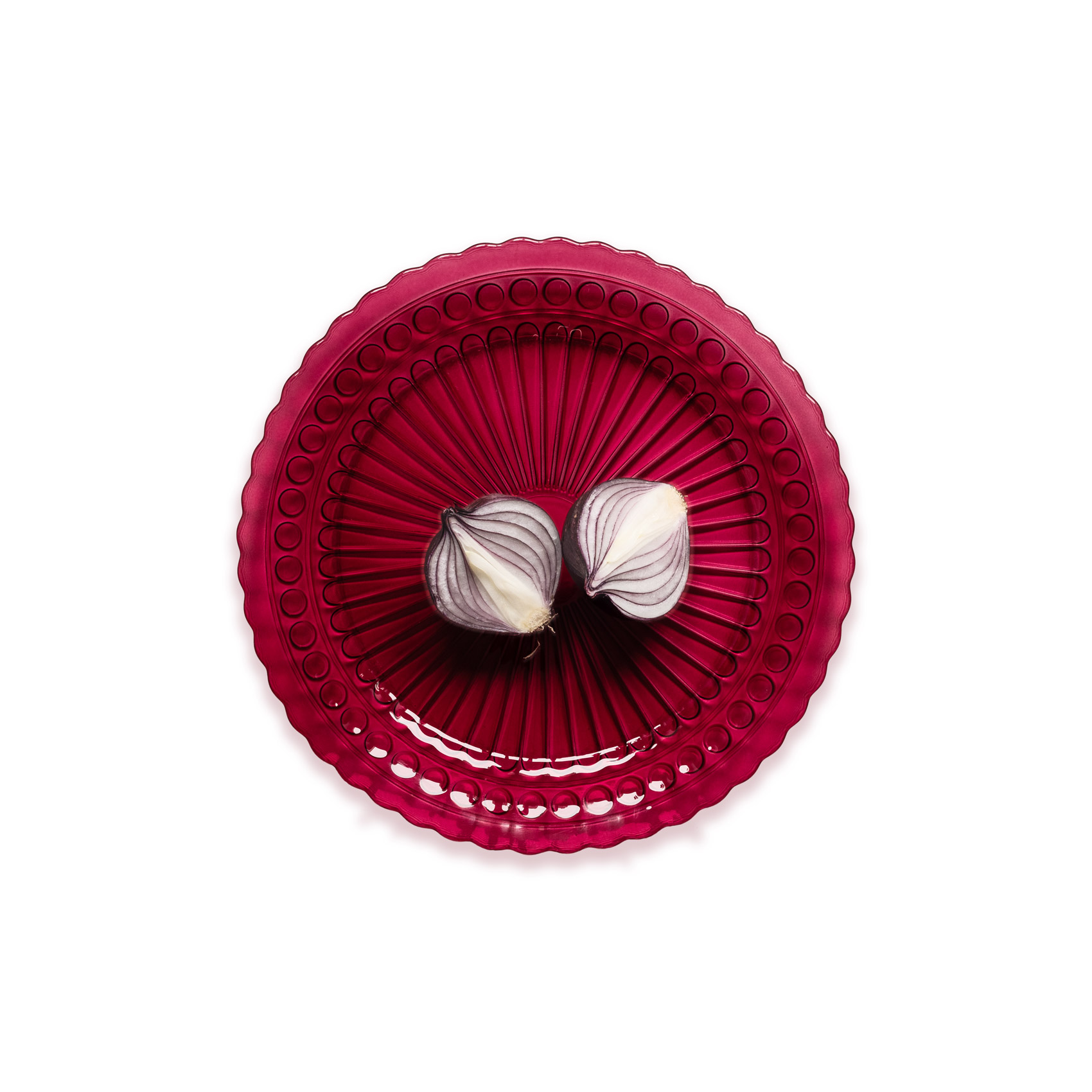 Talerz z wykończeniem w formie falbanki w kolorze bordowym brzmi wyjątkowo stylowo!