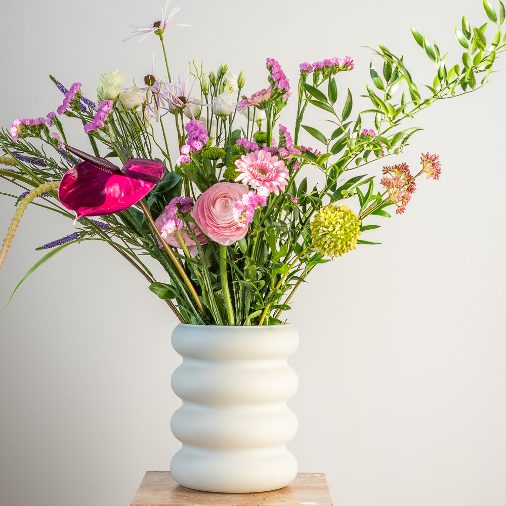 Dzięki neutralnemu odcieniowi beżu i miękkiej w dotyku powierzchni, wazon jest uniwersalny i ponadczasowy – doskonale komponuje się z naturalnymi materiałami: drewnem, kamieniem, lnem i ceramiką.