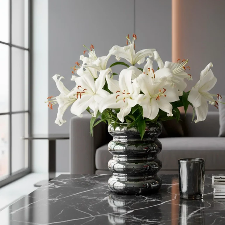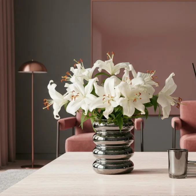Może pełnić rolę wyważonej dekoracji stołu, komody lub konsoli, zarówno z prostą kompozycją florystyczną, jak i jako samodzielny akcent.