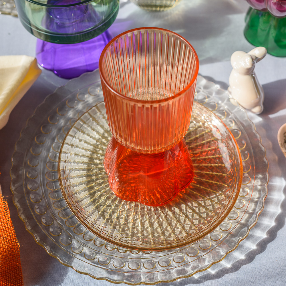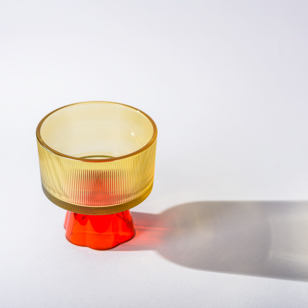 Kolorowe szkło wprowadza do wnętrza lekkość i świeżość, a gra światła na ryflowanych powierzchniach tworzy subtelny, dynamiczny efekt zarówno w ciągu dnia, jak i wieczorem.